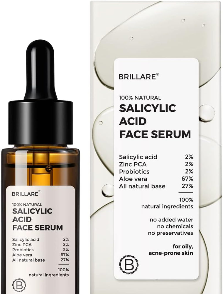 Brillaire Salicylic Acid Face Serum is a powerful exfoliating formula designed to fight acne, unclog pores, and improve overall skin texture. Infused with 2% Salicylic Acid, Niacinamide, and Witch Hazel Extract, this lightweight serum penetrates deep into pores to remove excess oil, control breakouts, and leave the skin visibly clearer and smoother. It’s the perfect daily treatment for oily and acne-prone skin.