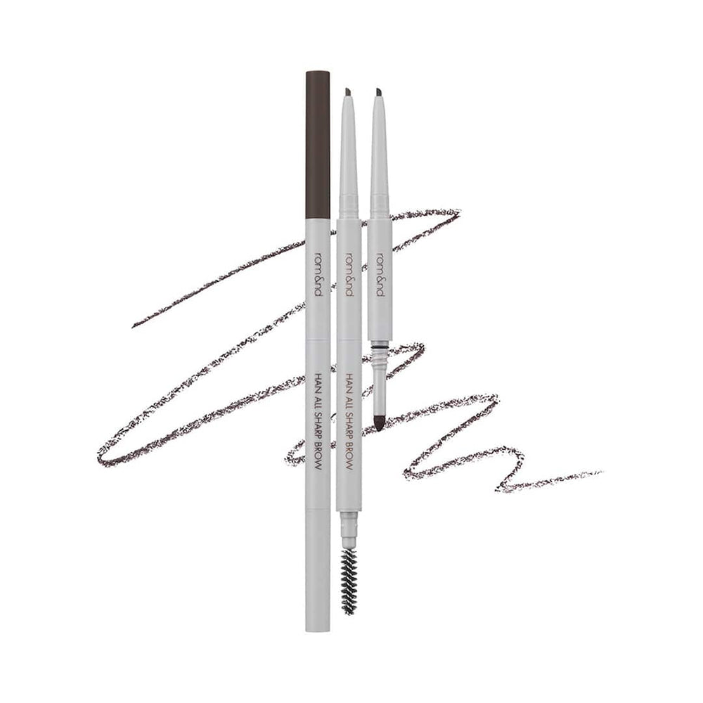 The Rom&nd Han All Sharp Brow pencil in W1 Gentle Brown is designed for those seeking a natural yet defined brow look. Its ultra-slim 1.5mm tip allows for precise application, mimicking natural brow hairs for a soft finish.