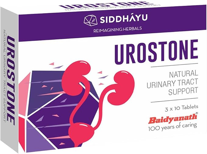 Support urinary tract health and kidney stone management with Siddhayu Urostone Tablets, an Ayurvedic formulation developed to help in the management and prevention of kidney stones (urolithiasis). Made with a blend of traditionally used herbs, Urostone supports urinary comfort and healthy kidney function.
