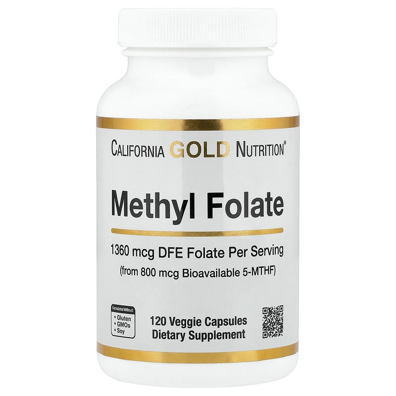 Contains bioactive methyl folate for superior absorption, non-GMO, gluten-free, soy-free, vegan-friendly, high-quality California Gold Nutrition formulation, lab-tested for purity and potency