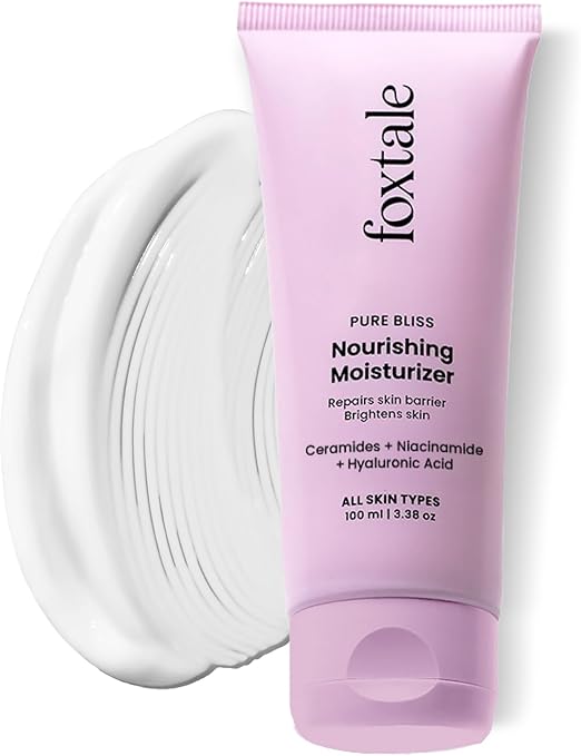 Foxtale Pure Bliss Nourishing Moisturizer is a deeply hydrating cream designed to nourish, soften, and strengthen the skin barrier. Its rich yet lightweight formula helps replenish moisture, leaving the skin smooth, plump, and healthy-looking without feeling greasy.