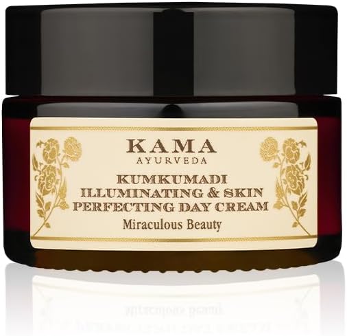 Kama Ayurveda Kumkumadi Illuminating & Skin Perfecting Day Cream is a luxurious Ayurvedic moisturizer that enhances natural radiance while hydrating, firming, and protecting the skin. Enriched with the legendary Kumkumadi Thailam — a blend of precious saffron, lotus, and licorice — this day cream helps reduce dark spots, smooth texture, and leave the skin glowing and even-toned.