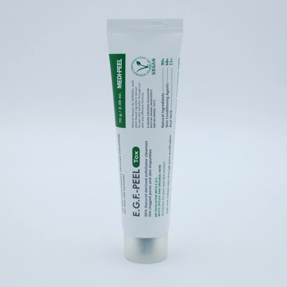 MEDI-PEEL EGF Peel Tox is an exfoliating + skin renewal treatment designed to improve texture, clarity, and smoothness. It gently removes dead skin cells while stimulating skin repair using EGF (Epidermal Growth Factor). The formula targets dullness, rough patches, and early signs of aging for a fresher, brighter complexion.