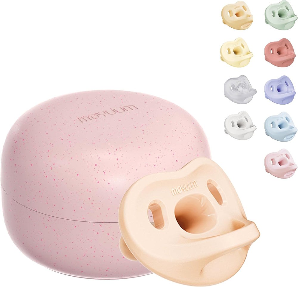 The Moyuum All-Silicone Macaron Pacifier Stage 2 – Pink is specially crafted for babies aged 3 to 6 months, offering a soft, natural, and soothing sucking experience. Made from premium food-grade silicone, it ensures maximum safety and comfort. The included protective case provides added hygiene and portability for daily use or travel.